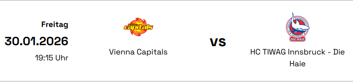 Freikarten ICE Hockey League Vienna Capitals vs HC TIWAG Innsbruck - Die Haie am 30 01 26