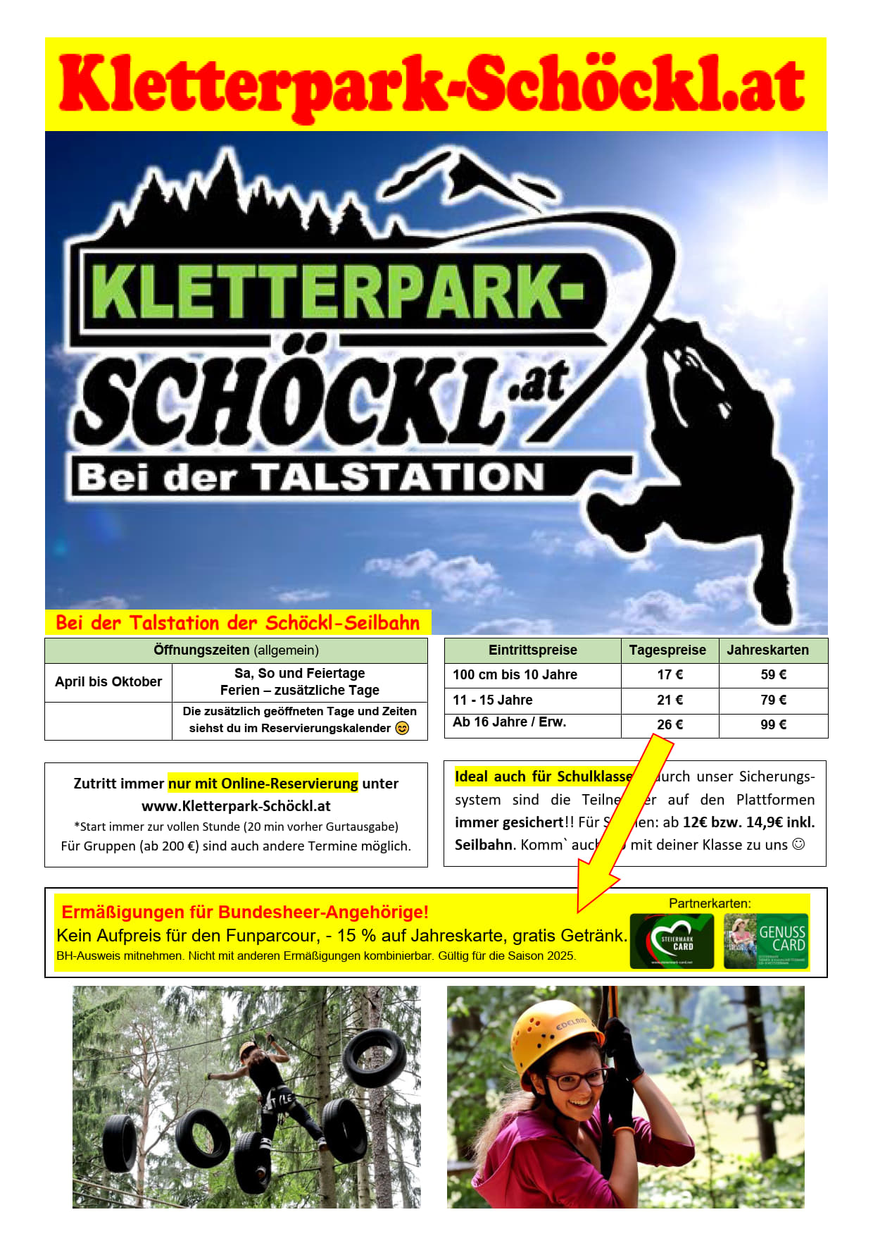 Kletterpark Schöckl bei der Talstation der Schöckl-Seilbahn:;Nur mit Online-Reservierung!