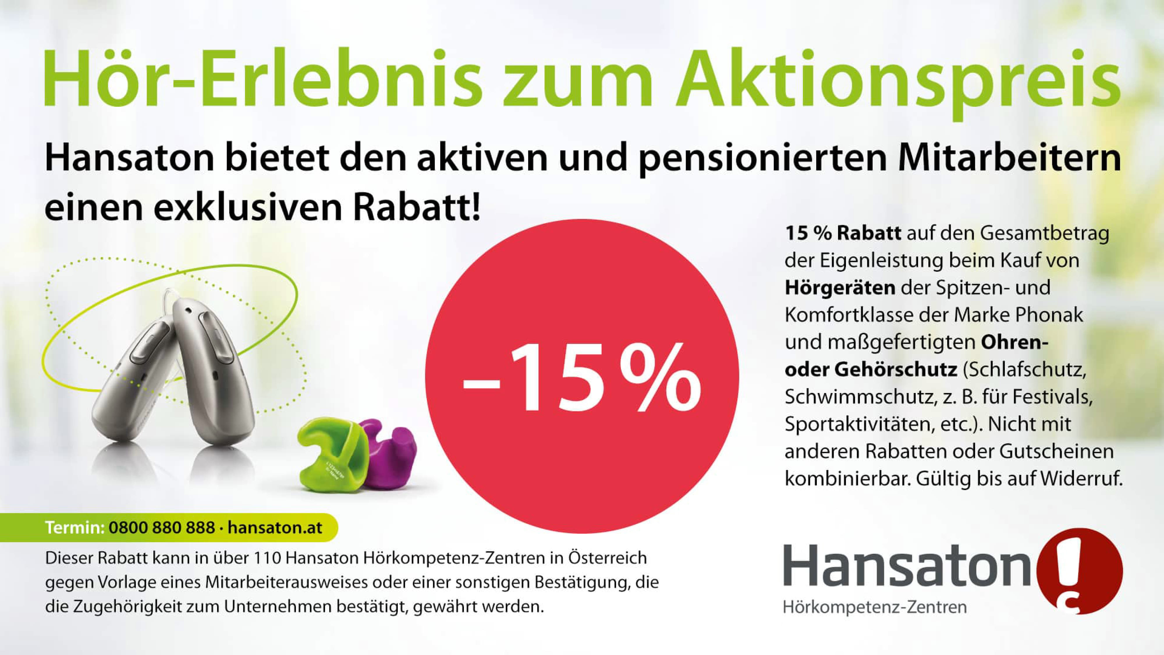 -15% Rabatt auf eine Neuroth HörlösungGültig bei Neukauf eines Hörgerätes mit Zuzahlung ab der Stufe 3 (sowohl bei einseitiger als auch zweiseitiger Versorgung), derRabatt ist ausschließlich auf den ge ...