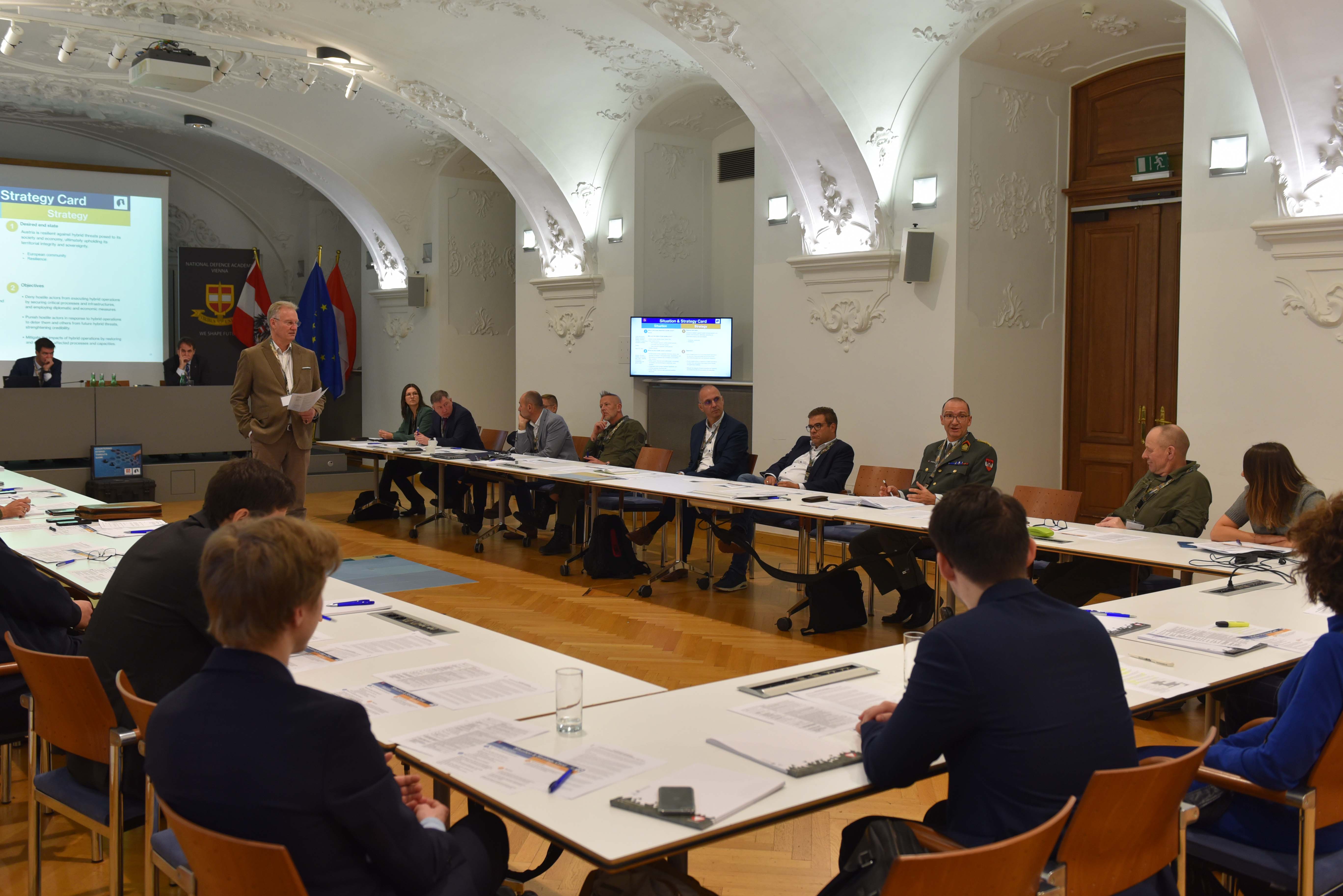 Das Ziel des kooperativen „Strategic Approach Game“, welchem ein reales, auf das sicherheitspolitische Lagebild Österreich zugeschnittenes Szenario zugrunde lag, konzentrierte sich auf die Entwicklung einer kohärenten Strategie zur Abwehr hybrider Bedrohungen auf gesamtstaatlicher Ebene.