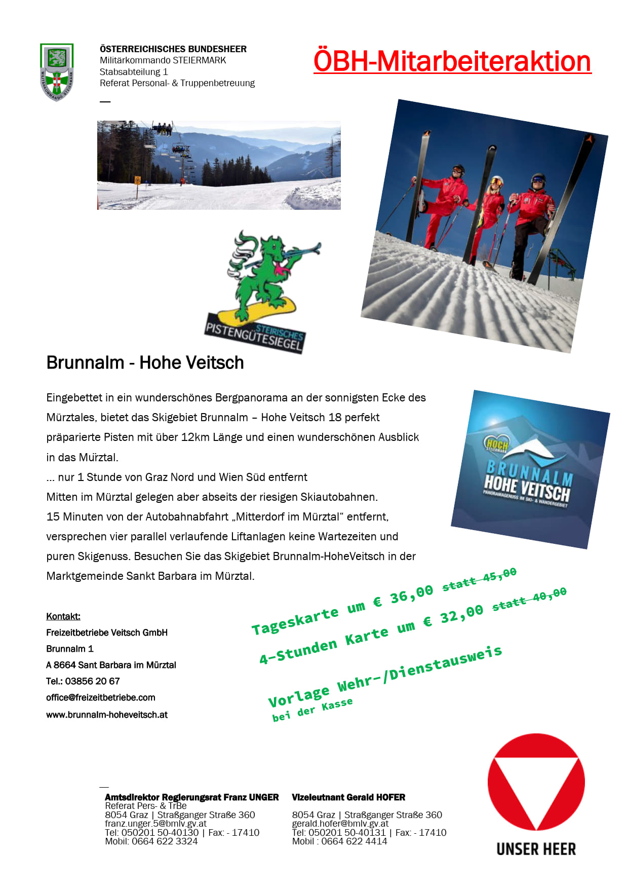UND SO FUNKTIONIERT´s….Anmeldung ausdrucken, ausfüllen, unterschreiben und eine der folgende Email Adressen schicken : stefan.huemer.4@bmlv.gv.atDas Referat Truppen- und FamBetr/MilKdo OÖ bestätigt dan ...