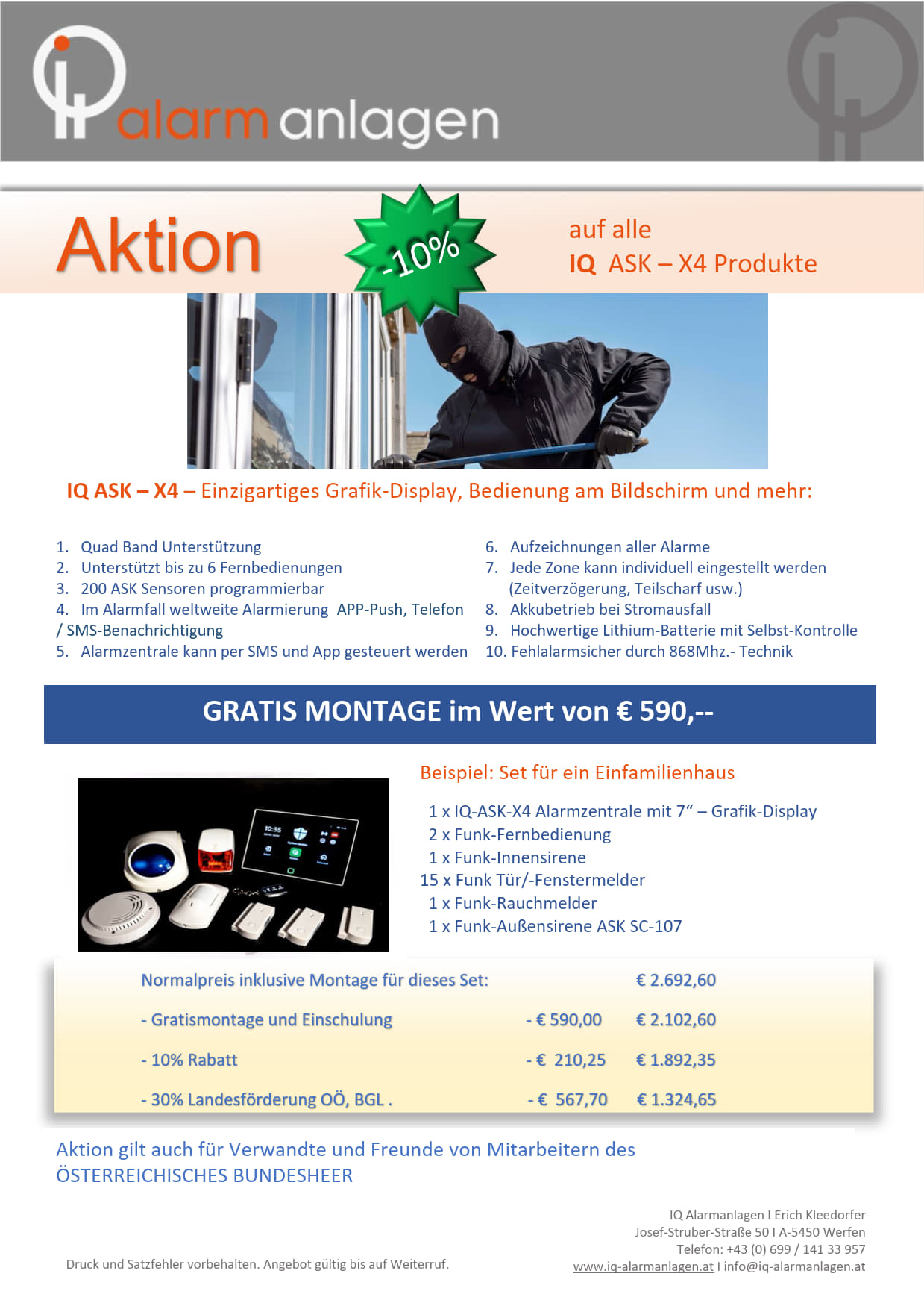 IQ Alarmanlagen;Aktion ist auch für Verwandte und Freunde von Bediensteten für das ÖBH