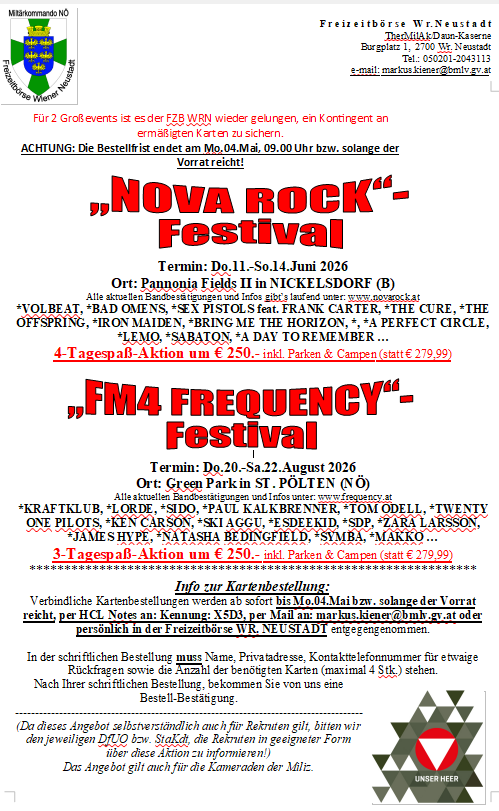 Nova Rock & Frequency Festival 2026 - Betreuung