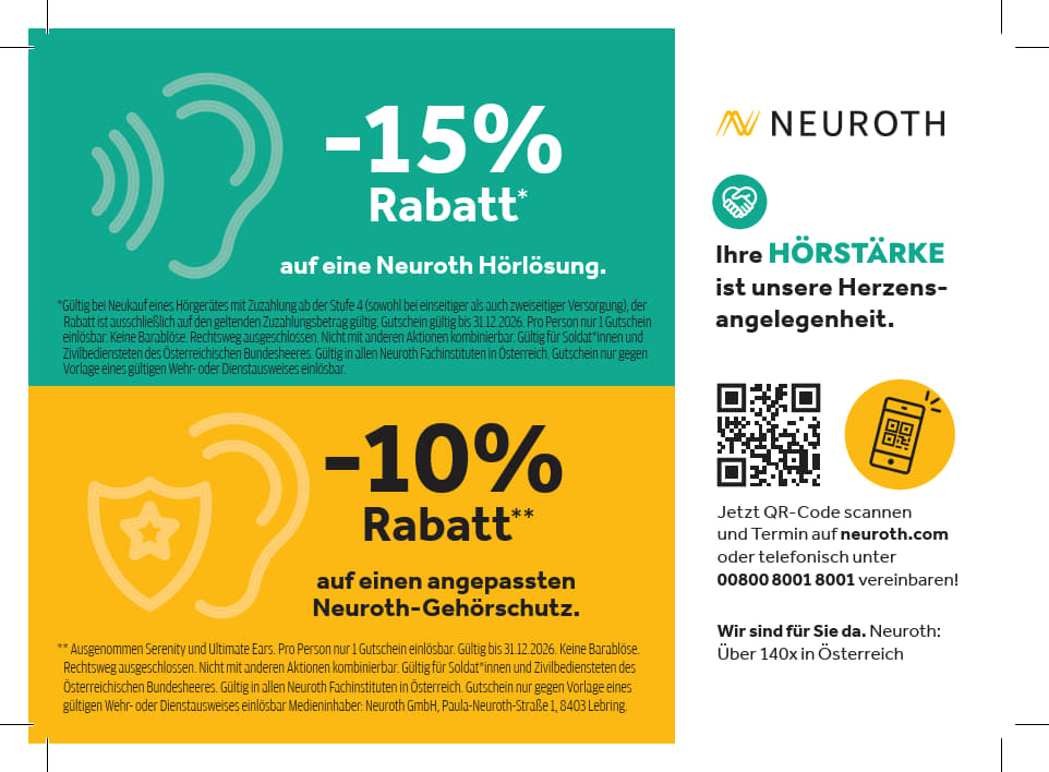 Das Ref TrBe&FamBe informiert über eine Ermäßigungsaktion von -10 % für alle Angehörigen des ÖBH (GWD, Soldaten, Zivilbedienstete und Wehrpflichtige der Miliz) nach Vorweis eines gültigen Dienstaus ...