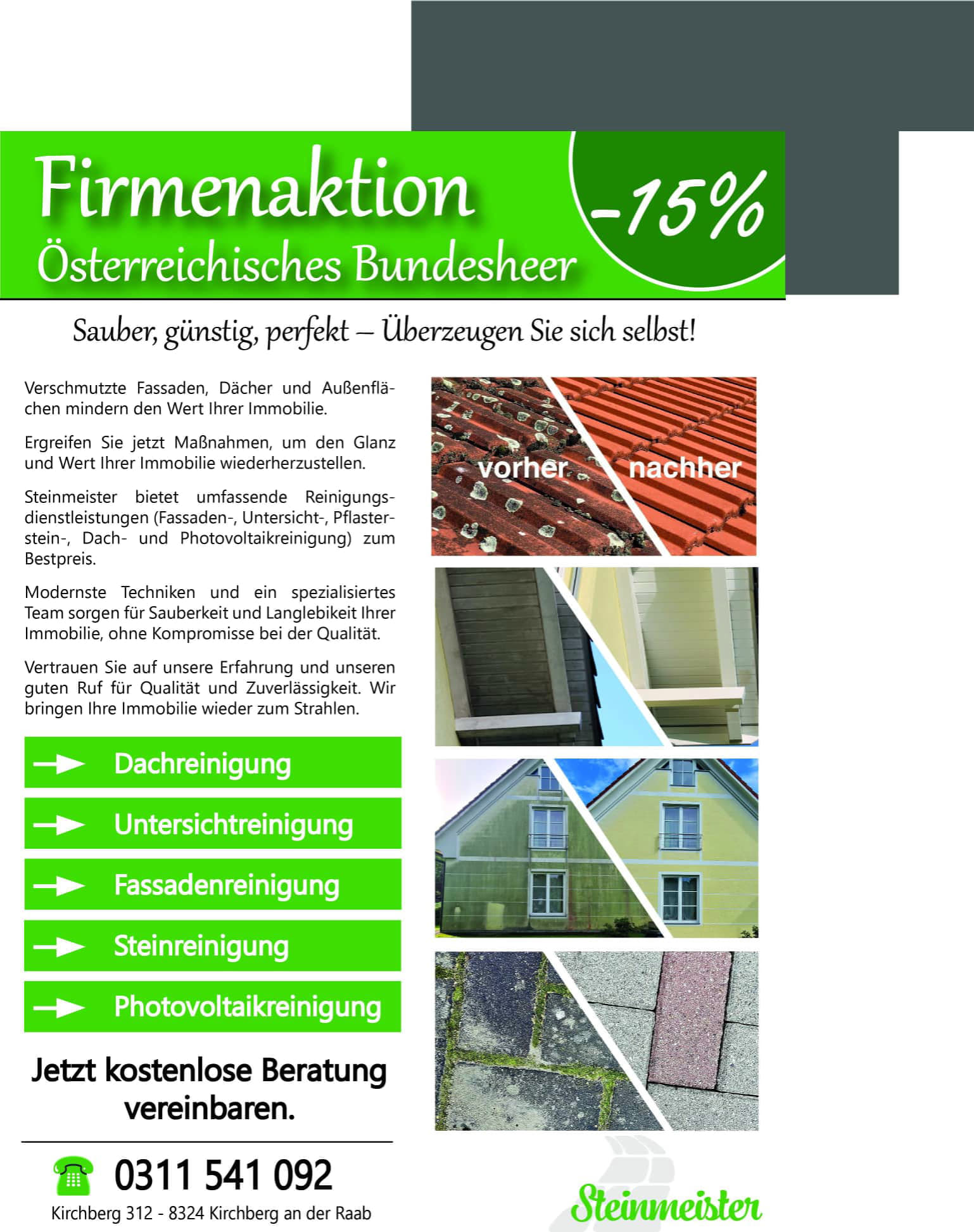 Steinmeister;Dachreinigung;Untersichtreinigung;Fassadenreinigung;Steinreinigung;Photovoltaikreinigung;