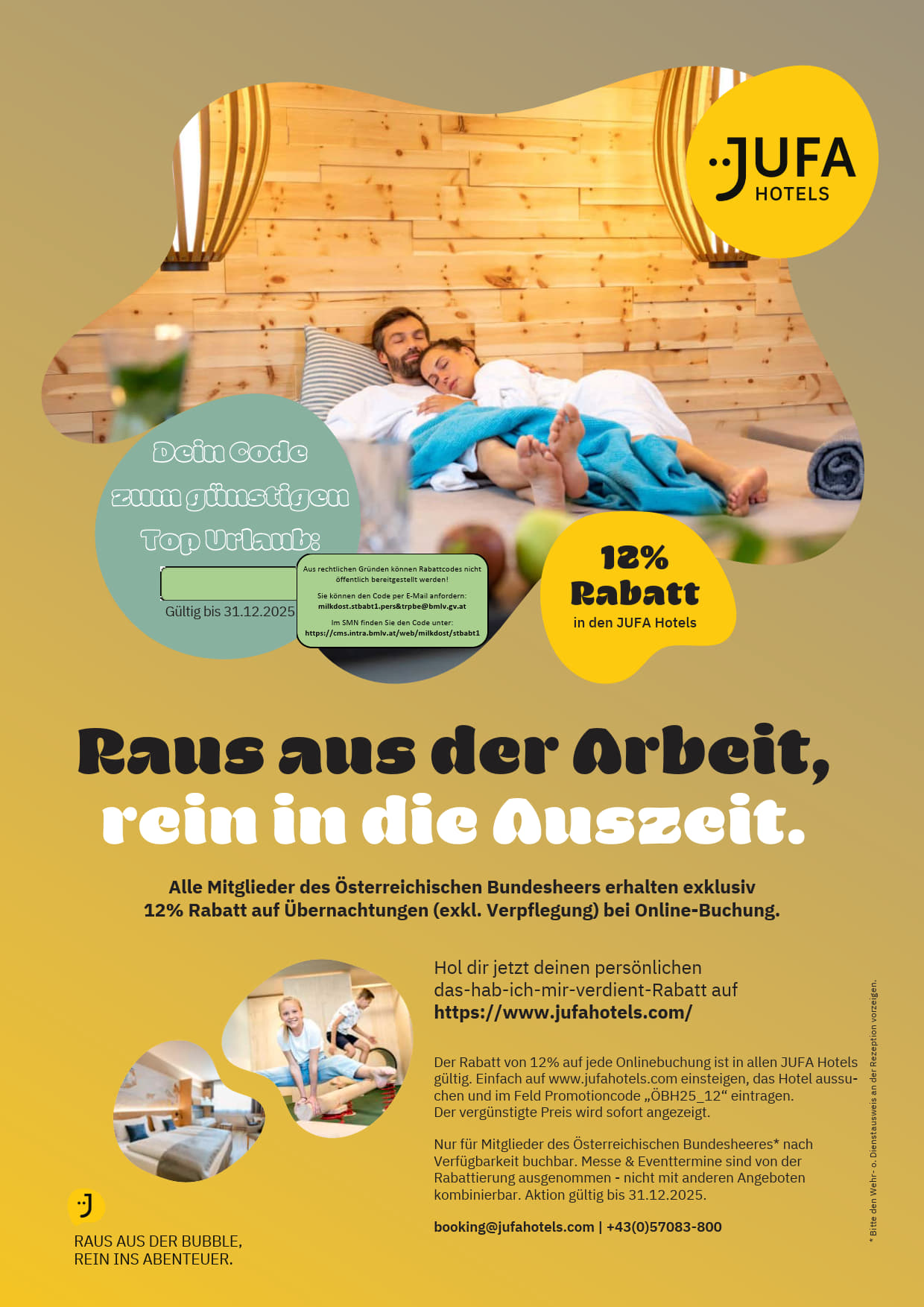 Sonderkondition für das Österreichische Bundesheer:Den hierfür erforderlichen Code finden Sie im SMN unter: https://cms.intra.bmlv.at/web/milkdost/stbabt1oder fordern Sie ihn per E-Mail an unter: milkd ...