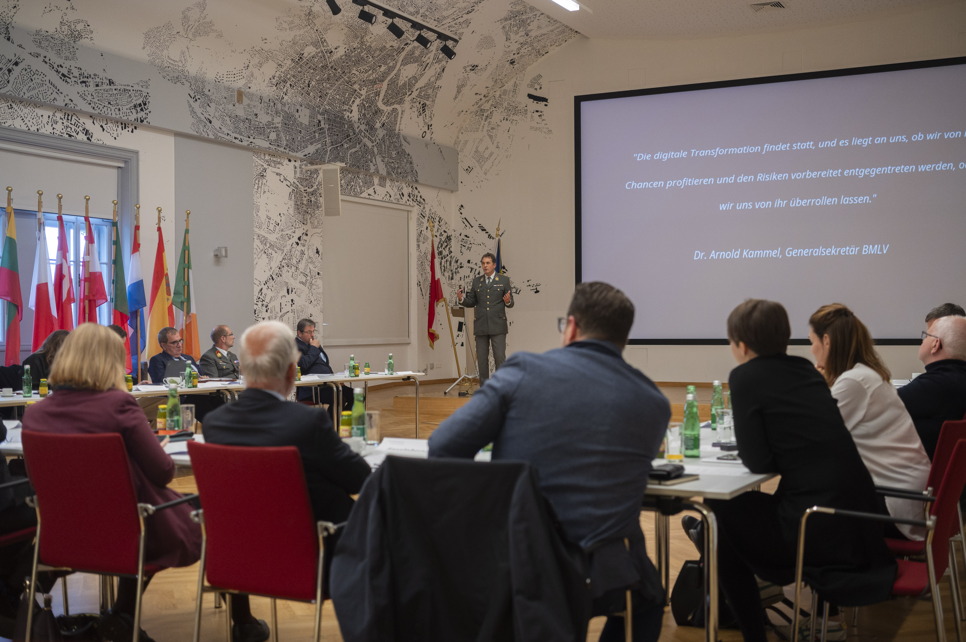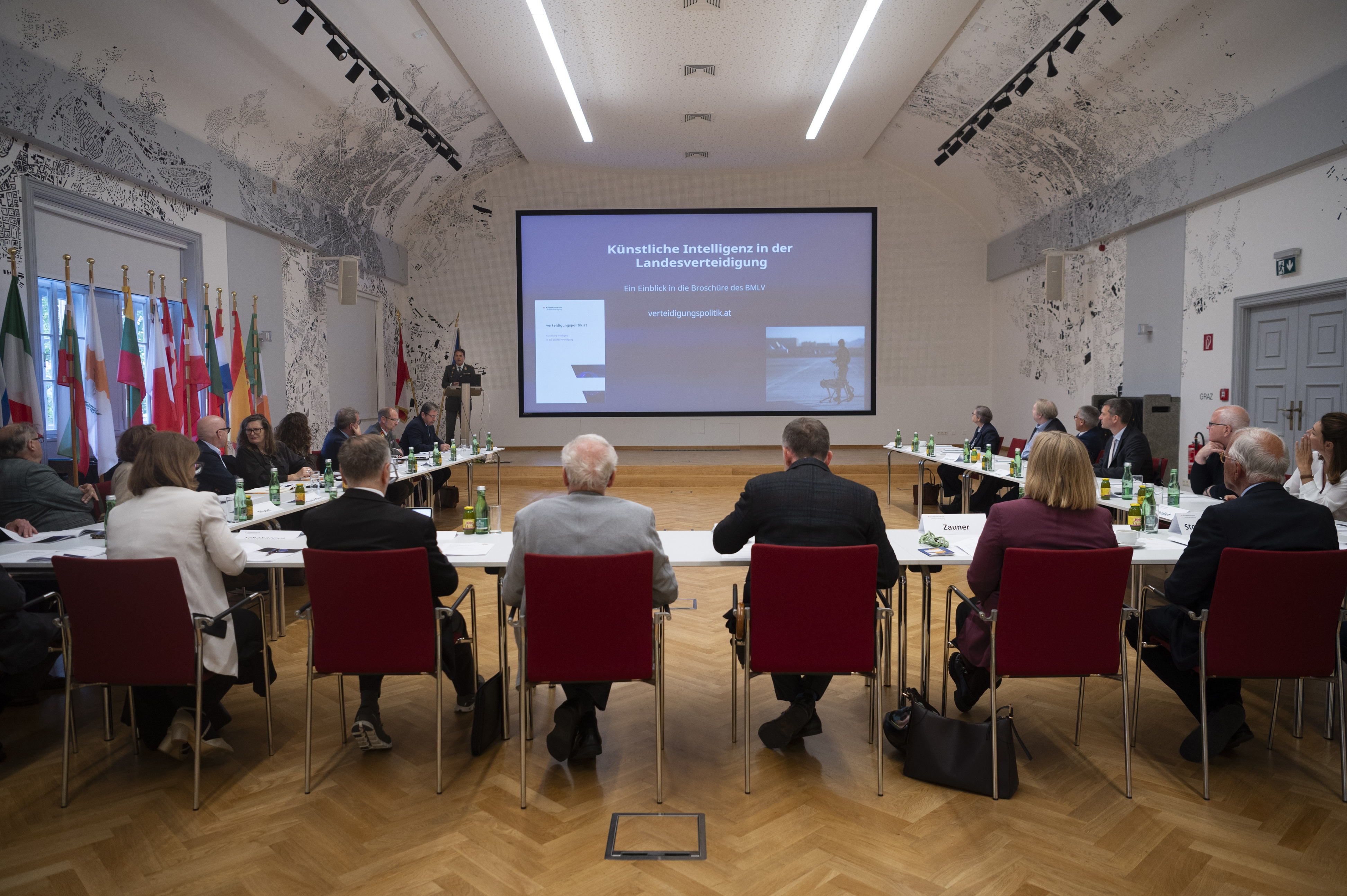 Zu Beginn präsentierte ObstdhmfD Mag. Camillo Nemec die erst vor kurzem veröffentlichte Publikation „Künstliche Intelligenz in der Landesverteidigung“. Die Broschüre untersucht Chancen, Risiken und Rahmenbedingungen des KI-Einsatzes im sicherheits- und verteidigungspolitischen Umfeld und behandelt dabei militärische Anwendungen, hybride Bedrohungen, rechtliche und ethische Fragen sowie die sicherheitspolitische Bedeutung für Österreich. Die KI-Broschüre ist, wie sämtliche Strategiedokumente, unter dem Bereich “Publikationen / Grundlagendokumente” abrufbar. Dort steht sie in deutscher und englischer Sprache als PDF-Dokument zum Download bereit.