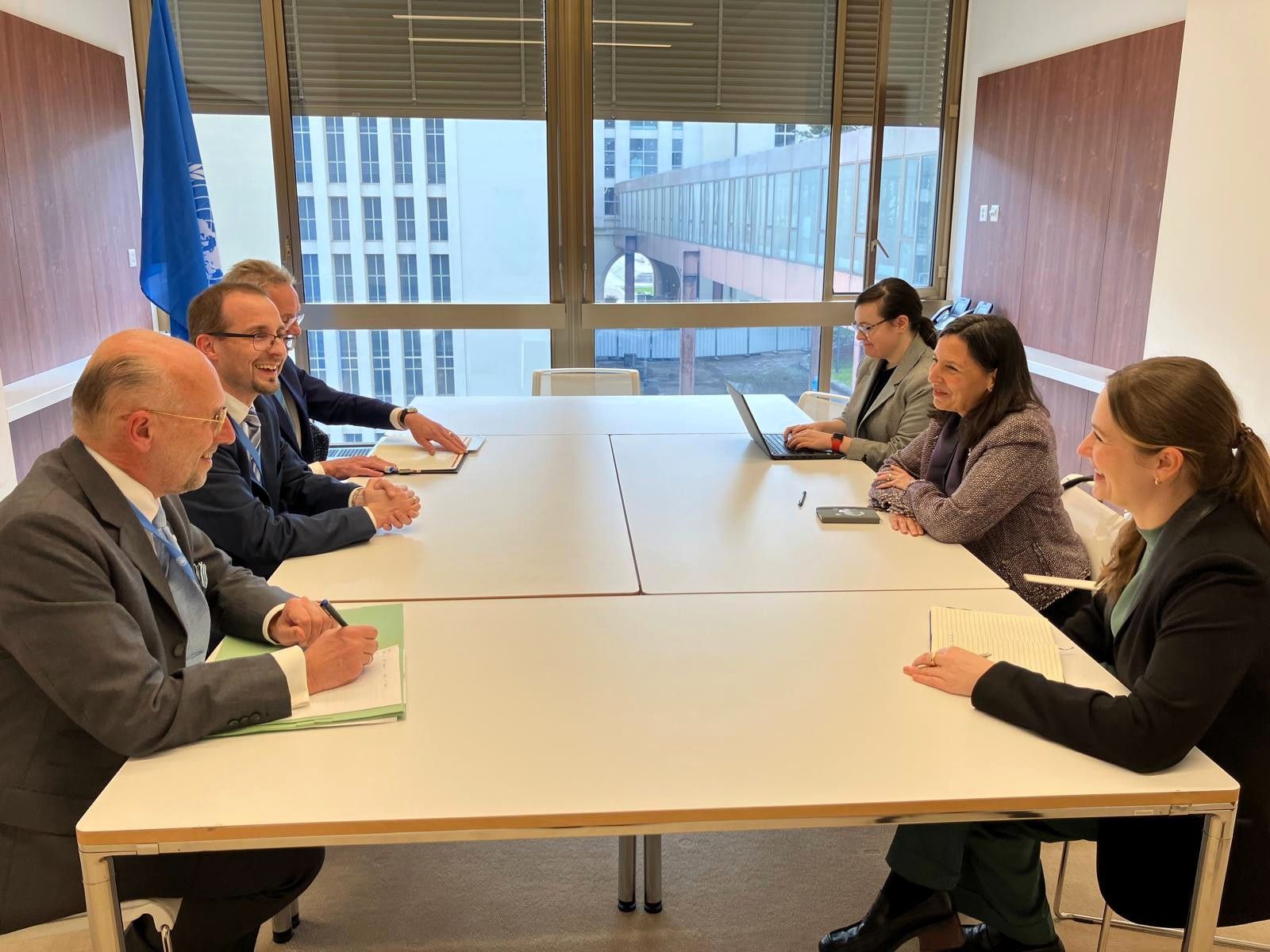 Im Zuge des Besuches führte Dr. Arnold KAMMEL auch Gespräche mit der Leiterin des UN-Büros für Abrüstung (United Nations Office for Disarmament Affaires (UNODA)), Fr. Carolyne-Mélanie RÈGIMBAL. Dabei wurde unter anderem über die Herausforderungen der gegenwärtigen geostrategische Lage für das Abrüstungsregime und der österreichische Beitrag für UNODA erörtert. Durch UNODA wurden vor allem die Anstrengungen durch das BMLV im Munitionsmanagement im Zuge der UN-Initiative „Women-Peace-Security“ hervorgehoben.