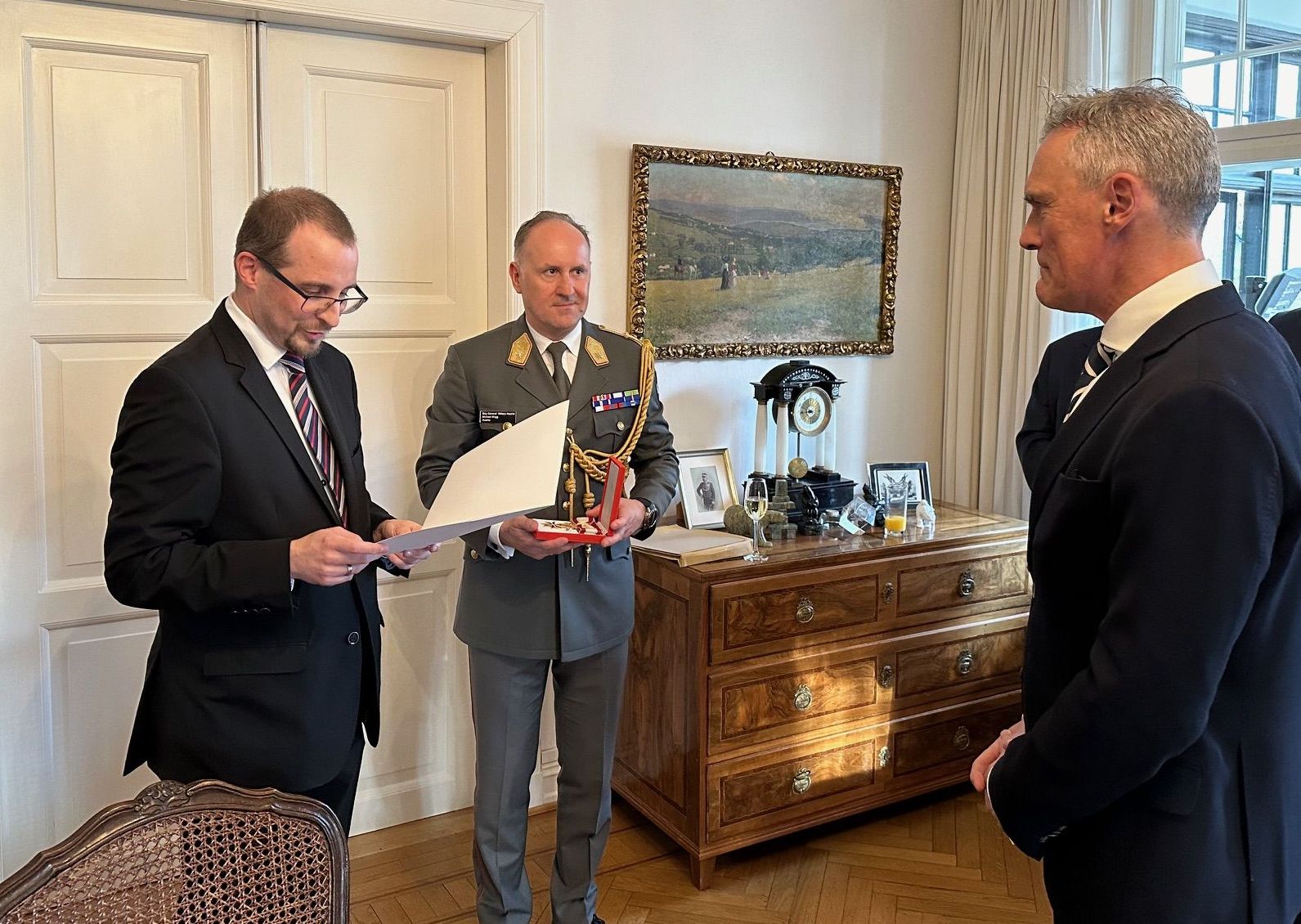 Am Rande des Signatarstaatentreffens fand auch eine Ordensverleihung statt. In der Residenz des österreichischen Botschafters in Norwegen überreichte Generalsekretär Dr. Kammel im Beisein des österreichischen Verteidigungsattachés in Norwegen, Brigadier Michael Wogg, das Große Goldene Ehrenzeichen für Verdienste um die Republik Österreich an den deutschen Botschafter Dr. Detlef Wächter. Als früherer Verteidigungspolitischer Direktor im Verteidigungsministerium der Bundesrepublik hatte Dr. Wächter großen Anteil an dem Ausbau der traditionell guten verteidigungspolitischen Kooperation zwischen Deutschland und Österreich.