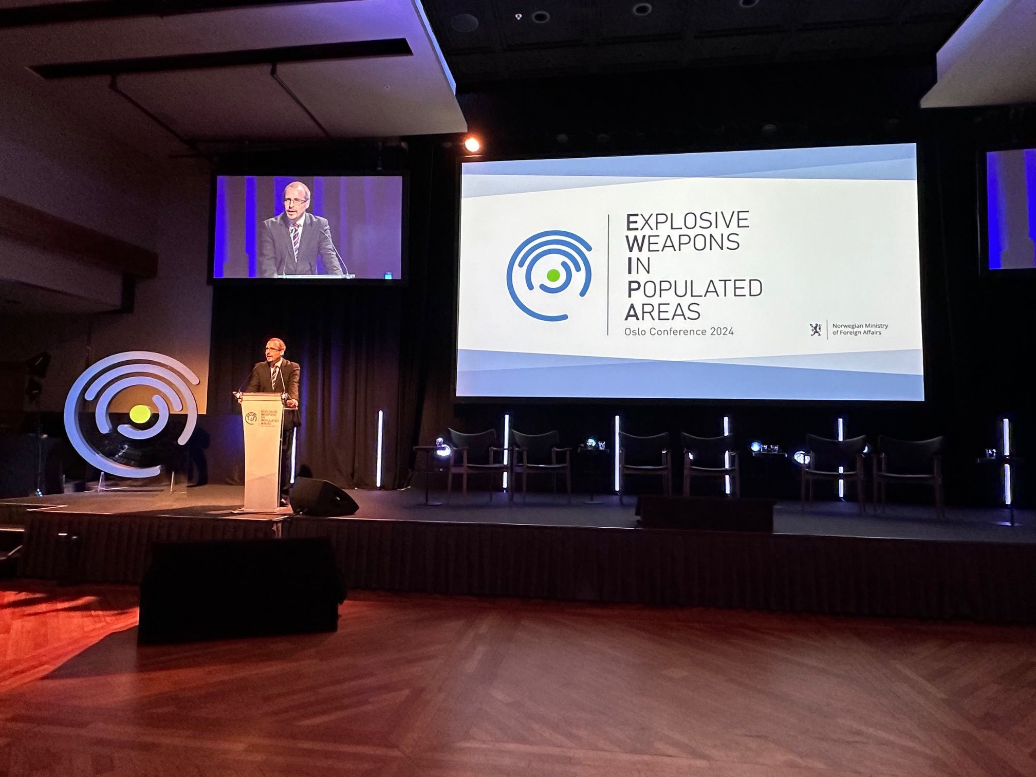 Am 23. April fand in Oslo das erste Treffen der Signatarstaaten der Politischen Deklaration zum Einsatz von Explosivwaffen in besiedelten Gebieten, kurz: EWIPA, statt. Das Ziel der EWIPA-Thematik ist es, den Schutz der Zivilbevölkerung beim Einsatz sogenannter „Explosivwaffen“ in besiedelten Gebieten, dazu gehören insbesondere Städte und Dörfer, zu erhöhen. Zu diesem Zweck haben mehr als 80 Staaten 2022 die Politische Deklaration zu EWIPA angenommen. Durch das Engagement in diesem Bereich wird ein Beitrag zur Stärkung des Humanitären Völkerrechts geleistet, das in bewaffneten Konflikten sicherstellen soll, dass die Zivilibevölkerung von Kampfhandlungen verschont bleiben. Unter Explosivwaffen wird – verkürzt dargestellt – Munition verstanden, die bei ihrem Aufschlag explodiert und dadurch eine mehr oder weniger große Flächenwirkung verursacht.
