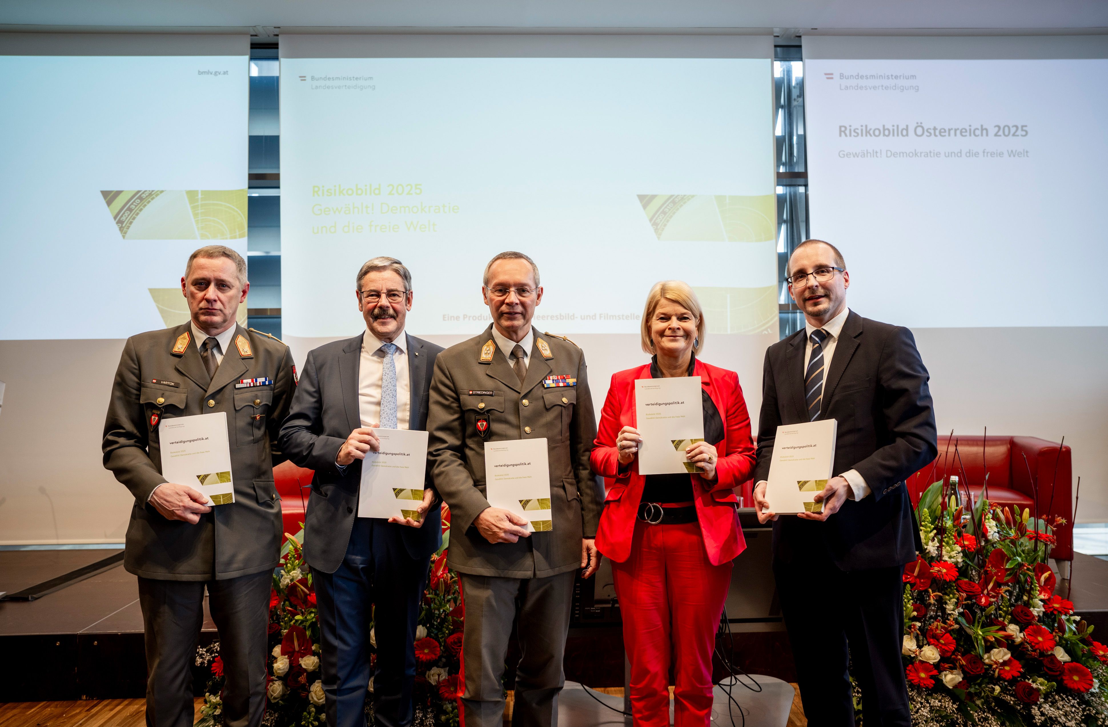Am Montag, dem 27. Jänner 2025 hat das Bundesministerium für Landesverteidigung die alljährliche Publikation Risikobild 2025 im Wiener Raiffeisen-Forum vorgestellt. Im Zuge dieser Veranstaltung wurden die zehn Top-Risiken für Österreich und Europa für die nächsten 12 bis 18 Monate präsentiert.